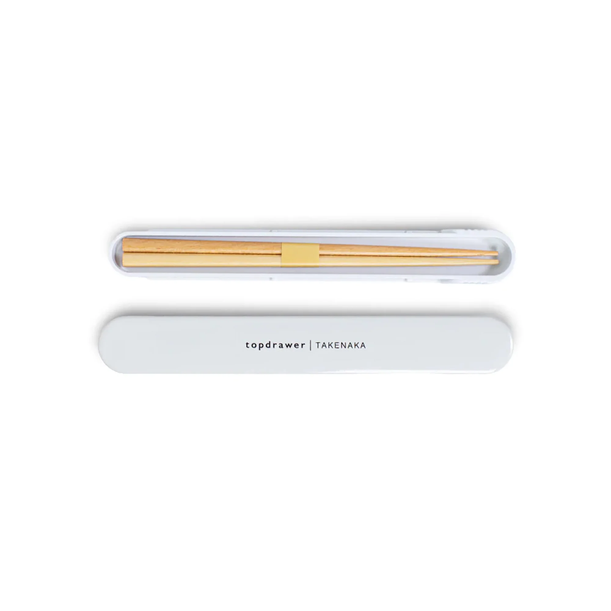 A Topdrawer x Takenaka collaboration. Two wooden reusable chopsticks. Eye-catching, unique sliding protective case. BPA-free, sustainable, and environmentally friendly.