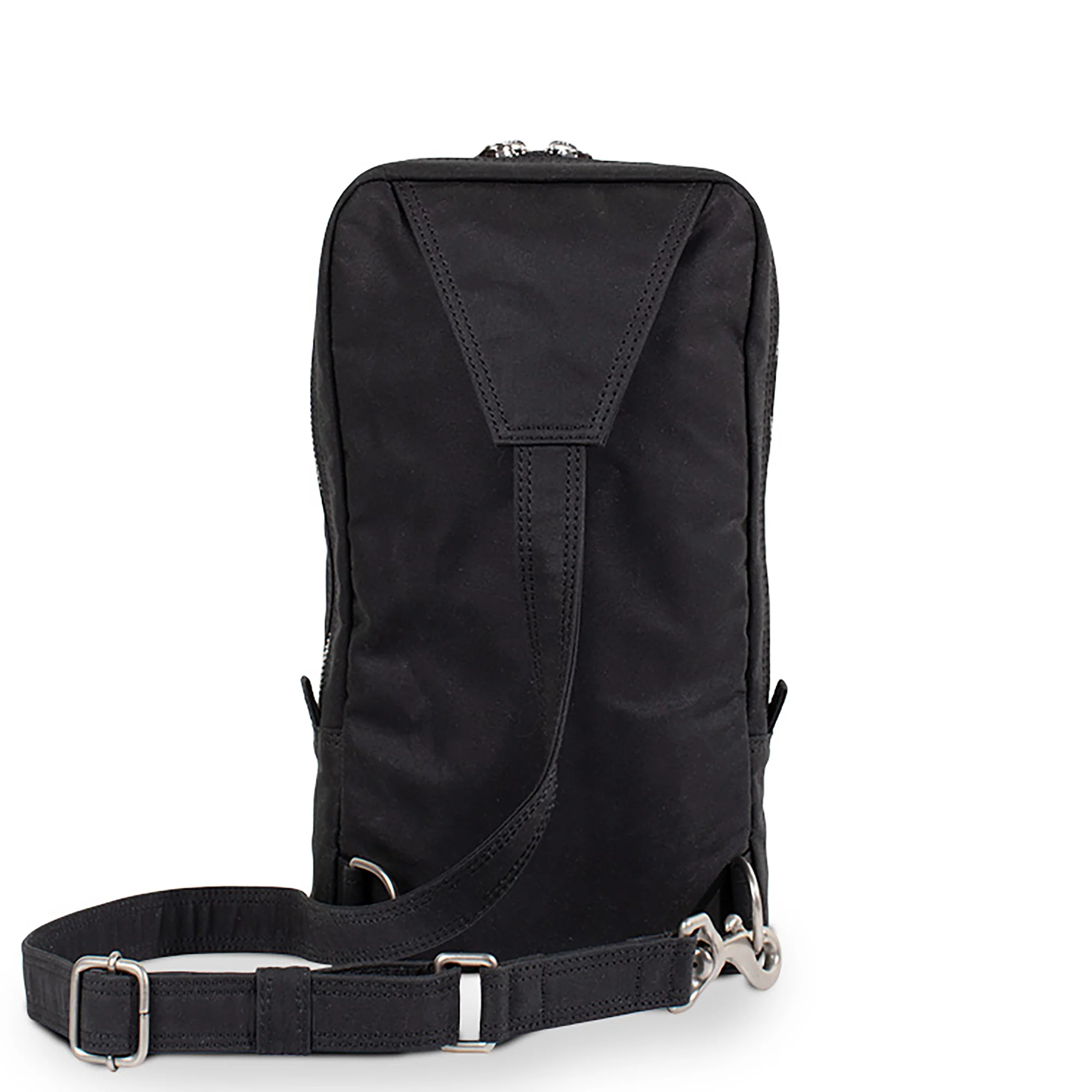Carry your belongings in our Keeley Sling bag, a sling bag coated with a layer of wax, making it durable and weatherproof. The cross-body strap is adjustable for the right or left shoulder and is constructed with our waxed canvas. We use high quality YKK zippers and premium solid brass hardware with a nickel matte finish. Keeley features a zippered main pocket for the largest size phone or kindle, front button pocket, and zipper pocket for smaller items.